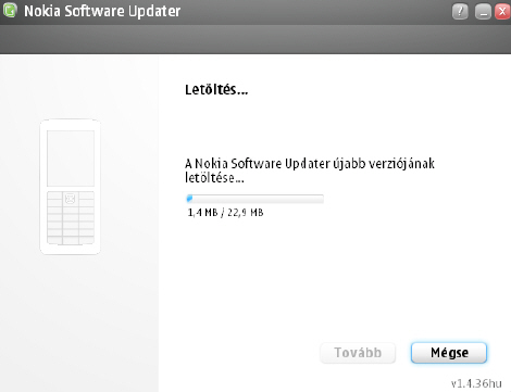 Gondoltam egyet és rádugtam a Nokia N82-t a számítógépemre, méghozzá olyan megfontolásból, hogy hátha megjelent valami frissítés a telefonhoz. Gyorsan rá is nyomtam a Nokia Software Updaterre, mely azzal az üzenettel fogadott, hogy új változat érhető el belőle: