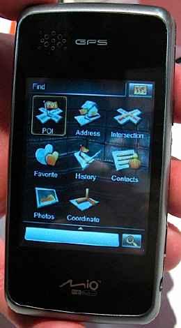 Míg az újdonság egyik oldala egy hagyományos mobiltelefonra hasonlít, addig a másik oldalon egy nagyméretű érintőkijelzővel felvértezett okostelefon tárul a szemünk elé. Megjegyzendő egyébként, hogy nem a Mio ezen GPS-es és integrált kamerás modellje a világ első kétarcú mobilja, hiszen a Samsung a közelmúltban több, ilyen, vagy legalábbis ehhez hasonló, elsősorban multimédiára kihegyezett telefonnal jelent meg a piacon.
