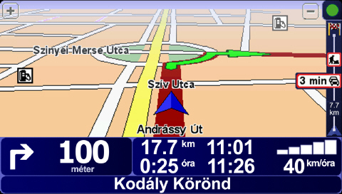 Az útvonal megtervezése után, a közlekedési információk automatikusan megjelennek a készülék kijelzőjének jobb szélén található sávban. Erre a sávra kattintva további értékes információt kaphatunk az aktuális közlekedési eseményről, a forgalmi dugókról és a várható késés mértékéről.