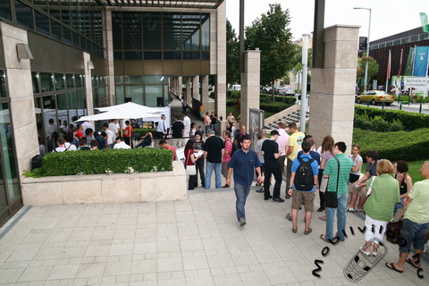 Tavaly augusztus 22. volt a nagy nap, amikor is hivatalosan megkezdődött az iPhone 3G magyarországi forgalmazása, még pedig a MOM Park Bevásárlóközpontban található T-Pont üzletben. A helyszín idén is változatlan, a dátum 2009. július 31., a főszereplő pedig az Apple idei nagyágyúja, az elődjénél természetesen drágább (de Dominoban ugyancsak kapható) iPhone 3GS. A forgalmazás pontban reggel 9-kor kezdődött meg, én 8-kor értem a MOM-ba, amikor már jó pár fanatikus sorakozott az akkor számukra még zárt ajtók előtt.
