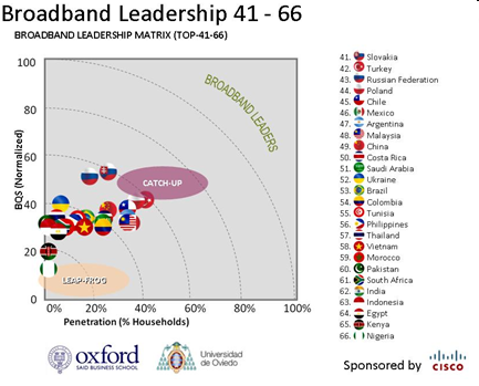 A szélessávú kapcsolatok minőségéről szóló tanulmány szerint a vizsgált 66 országból tavaly óta 62-ben javult a fogyasztói szélessávú szolgáltatások minősége. A Cisco szponzorálásával készült tanulmányt az Oxfordi Egyetem Said Business School üzleti iskolájának MBA-diákjai készítették, együttműködve az Oviedói Egyetem alkalmazott közgazdaságtan tanszékével. A kutatócsoport megállapítása szerint a szélessávú szolgáltatások minősége összefügg az adott országok „tudásgazdasági” lehetőségeivel. Emellett igazolást nyert, hogy azokban az országokban a legjobb a minőség, ahol a szélessávú internet elérés megjelent a nemzeti prioritások között.