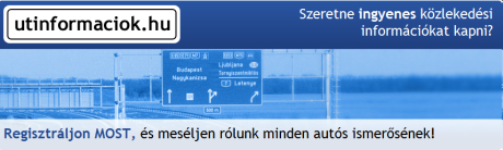 Ha szeretne a jövőben ingyenes közlekedési információkat kapni, regisztráljon MOST itt, ezzel támogatva a készítőket. Regisztrációjával minden későbbi, témába vágó információról tudják így értesíteni a készítők, valamint ingyen megkapja az Útinformációs Gyűjteményt és annak frissítéseit.