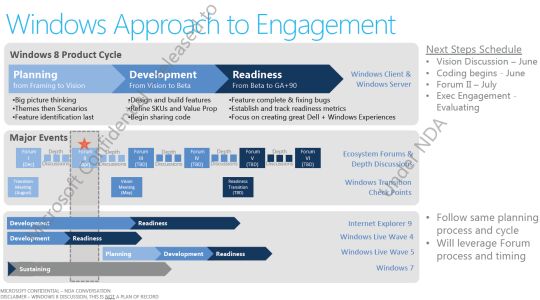 Egy áprilisi, számítógépgyártókkal való kaliforniai találkozó dokumentumai szivárogtak ki a napokban az Internetre, melynek köszönhetően kiderült, hogy sok évnyi tempódiktálás után a Microsoft ezúttal az Apple-t próbálja követni. Tervei szerint olyan szoftverpiacot fog létrehozni az asztali gépek esetében Windows Store munkanéven, mint amilyennel Steve Jobs cége már régóta rendelkezik az iPhone tekintetében. Az egyik slide tanúsága szerint a Microsoftnak hasonlóan egyszerű designra van szüksége, mint amilyennel az Apple rendelkezik. „Az Apple márkanév magas minőségéről, egyszerűen kezelhető termékeiről ismert, egyszerűen működik” – olvasható a dokumentumban – „Ez olyasmi, amiért az emberek fizetnek!” – vonja le a végkövetkeztetést a prezentáció készítője.