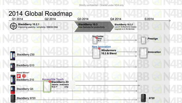 A “Windermere” jelszóval feltüntetett Passport, mint látjuk a harmadik negyedévben debütál, a “Khan” Porsche Design és a BlackBerry közös gyermekével, a P 9983-assal együtt. Arról nem nyertünk információkat, hogy láthatjuk-e idén a pletykákban szereplő Classic, és a Z3 LTE modelleket, de annyit tudunk, hogy az új rendszer (BlackBerry 10.3) a zászlóshajóval együtt kerül a vásárlókhoz. A tábláról az is leolvasható, hogy sajnos több eszköz is életútjának végéhez közeledik, így a 9720 és a Q10 már nem éli meg a jövő évet.