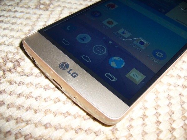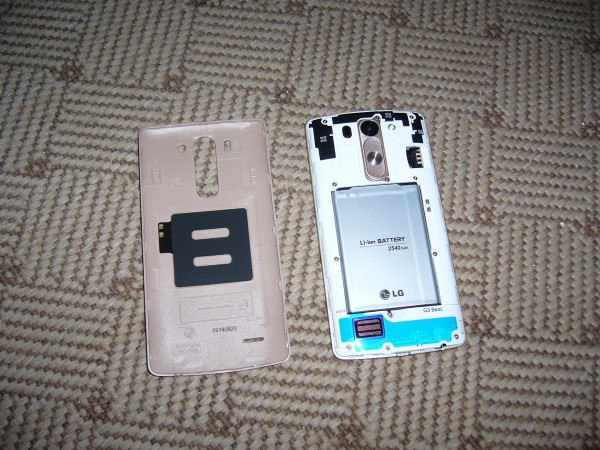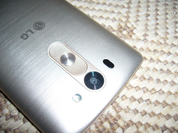 Ezúttal is izgalmasabb a hátlap a megszokottnál. Többek között itt találjuk bal alul a kihangosítót, középen felül pedig egész kis csoport van. Lentről felfelé haladva első a hangerőszabályzó gombpáros, melyek közrefogják a bekapcsoló billentyűt. Felette következik a kamera optikája, tőle jobbra egy LED segédfényt, balra pedig a lézeres autofókuszt. A hátlap a G3-hoz hasonlóan levehető és az akkumulátor is cserélhető, a felülete pedig itt is csak imitálja a szálcsiszolt fémet. A lítium-ion telep 2540 mAh-s kapacitással rendelkezik, ez a teljesítmény normál használat mellett 1,5 nap üzemidőre elegendő, de azért esténként ajánlott inkább töltőre tenni.
