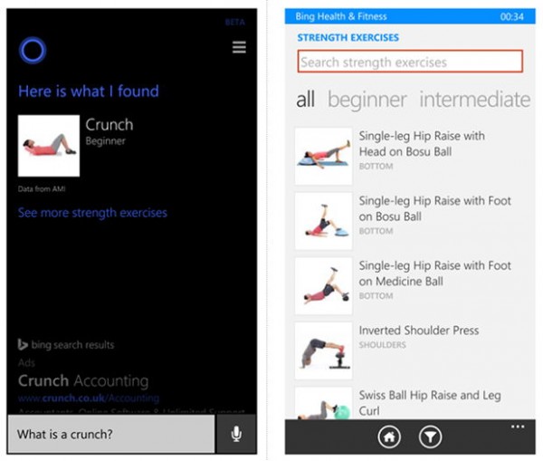 A vállalat What’s new oldalán közzétett információk szerint, a sportkedvelők ezentúl már otthon is elvégezhető fitnesz feladatokat is olvashatnak, pontos leírásokkal és illusztrációkkal. Hát nem nagyszerű? Mindezt a Bing Health and Fitness applikáció segítségével éri el, melyet közvetlenül a keresések mellől nyithatunk meg. Valóban hasznos lehet a gyors keresés ebben a témakörben is, hiszen rendkívül sok hasznos és egyszerűen kivitelezhető feladattal lát el bennünket az okos szolgáltatás.