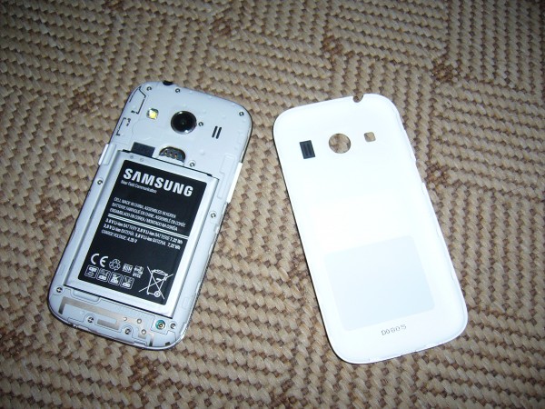 A Galaxy Ace 4 Style hátlapján egy középen végighúzódó sávos csíkot látunk, ebbe került a márkajelzés és a kamera. A kamerától jobbra a hangszóró, balra pedig a segédfény látható. A hátlap matt műanyag, kevésbé csúszik mint lakkozott társai. A hátlap levehető, alatt a microSD kártyahelyet és a microSIM foglalatot találjuk. Az akkumulátor cserélhető, melynek kapacitása 1900 mAh. A készülék üzemideje kemény használat mellett 1 napra tehető, de mérsékelt használattal a 2 nap sem zárható ki.