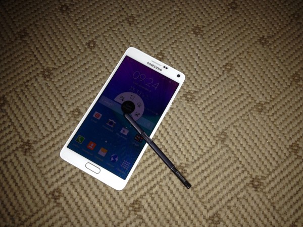 A Samsung Galaxy Note 4 hosszában nőtt egy kevéskét, de szélességre csökkent, ezáltal talán egy kicsit jobb fogása lett az eszköznek. Tesztalanyunk előlapján egy 5,7 hüvelykes, Super AMOLED technológiát használó panellel van dolgunk. Felbontását tekintve nőtt, pontosan 1440 x 2560 pixelre, és ezzel együtt gyönyörű képet ad a kijelző és a betekintési szögek is hatalmasak, ez nagyon jól sikerült. A panel alatt a 3 androidos gomb (vissza, home (ujjlenyomat-olvasós), alkalmazásváltó) látható, míg felette a márkajelzés, beszédhangszóró, a különféle szenzorok és az előlapi kamera nézi legtöbbször orcánkat.