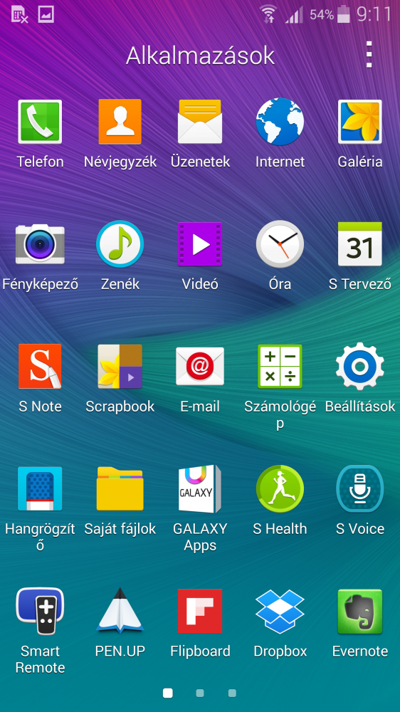 Extra programok között ki kell emelni az S Health szolgáltatást, de van még PEN.UP,Smart Remote, Evernote, Dropbox és Scrapbook. Egyéb extrákért a Play áruházat kell megrohamozni, ott ezerszámra lehet válogatni belőlük.