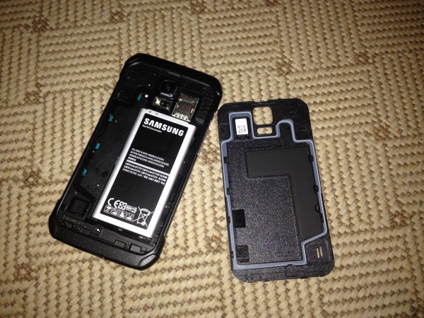 A hátlap leszedhető, belső gumiszigeteléssel oldották meg a vízhatlanságot, ez és az egymás mellett szorosan elhelyezkedő fülek bepattintása biztosítja a jó záródást. A négy sarokban látható „szegecsek” díszként szolgálnak, egyéb funkciójuk nincs. A hátoldal mintázata megegyezik az előlapival, de szerencsére nem lakkozott. Bal alul a hangszóró, felől középen a gyártó logoja, a pulzusmérő, LED segédfény és a kamera foglalja el pozícióját. A hátsó fedél lehámozása után férünk hozzá a kivehető 2800 mAh-s akkumulátorhoz illetve a microSD és microSIM foglalathoz. Üzemidő tekintetében elmondható, hogy az 1 nap garantálható, de 1,5 nap is kihozható az eszközből.