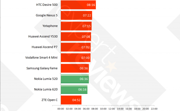 Az Expert Reviews csapata úgy döntött, hogy készít egy átfogó tesztet annak érdekében, hogy a legközelebbi vásárlásunk során egy igazi üzemidőbajnok készülékre tehessünk szert. A teszt során a Pókember 2 HD verzióját játszották le folyamatosan a telefonokon, majd megnézték, hogy egy ilyen, intenzív igénybevétel során meddig marad “ébren” a tesztkészülék.