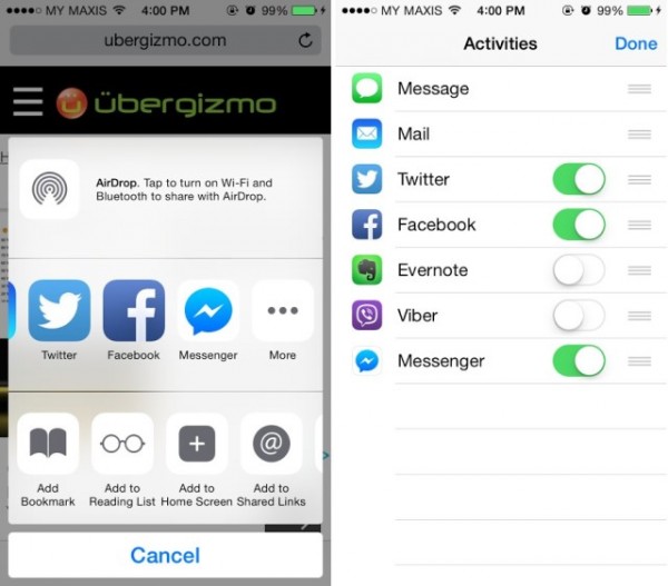 Már nem kell linkeket másolgatnunk, hiszen elég csak hozzáadnunk a Messengert ehhez a listához, ahogy ez a jobb oldali képen is látszik. Természetesen az új funkció egy frissítéssel érkezik, így le kell töltenünk a 22.0-ás verziót az App Store-ból. Ha gyakran használjuk a Facebook chat szolgáltatását, mindenképp megéri letölteni a megújult appot.