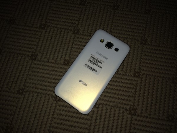 A jobb oldalon akár az E7-nél a két SIM tálca látható, melyből a második a microSD kártyahelye is lehet egyben, felettük pedig a ki -és bekapcsológomb látható. Alulra a mikrofon, microUSB és a 3,5 mm-es jack csatlakozó került. A bal oldalon csupán a hangerőszabályzó gombpáros bukkan fel, felül pedig a másodlagos mikrofon. A keret teljesen a Galaxy E7 elrendezését kapta, és a hátlap is.