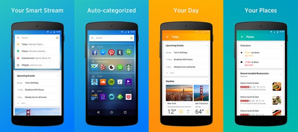 A Yahoo által felvásárolt Aviate egy olyan launcher, melynek főképernyője elhelyezkedésünk és a napszakhoz viszonyítva változik, ügyesen tálalva nekünk az éppen kellő funkciókat és appokat.