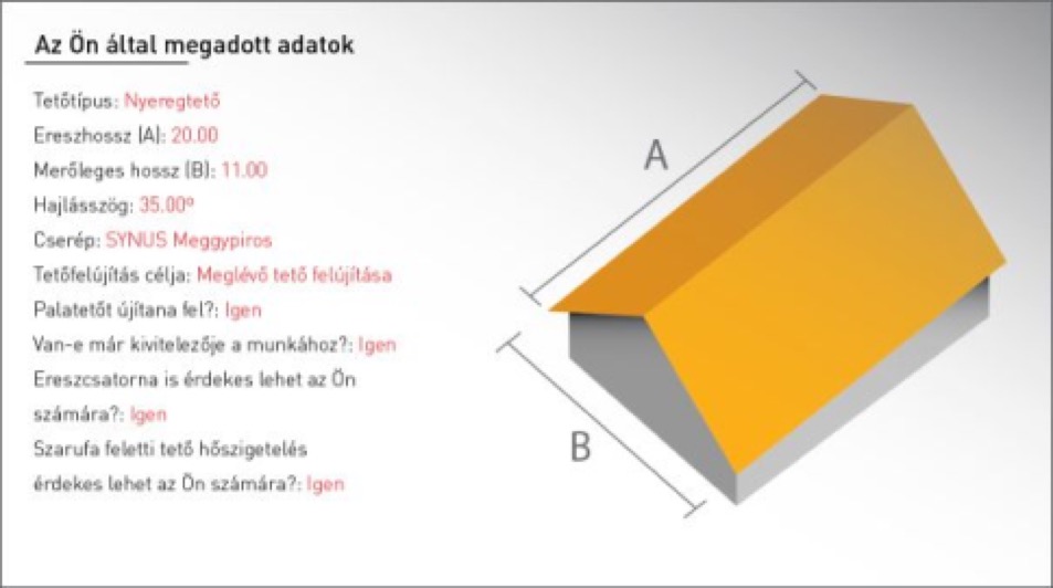 Terrán tetőkalkulátor példa egy átlagos méretű tetőhöz: