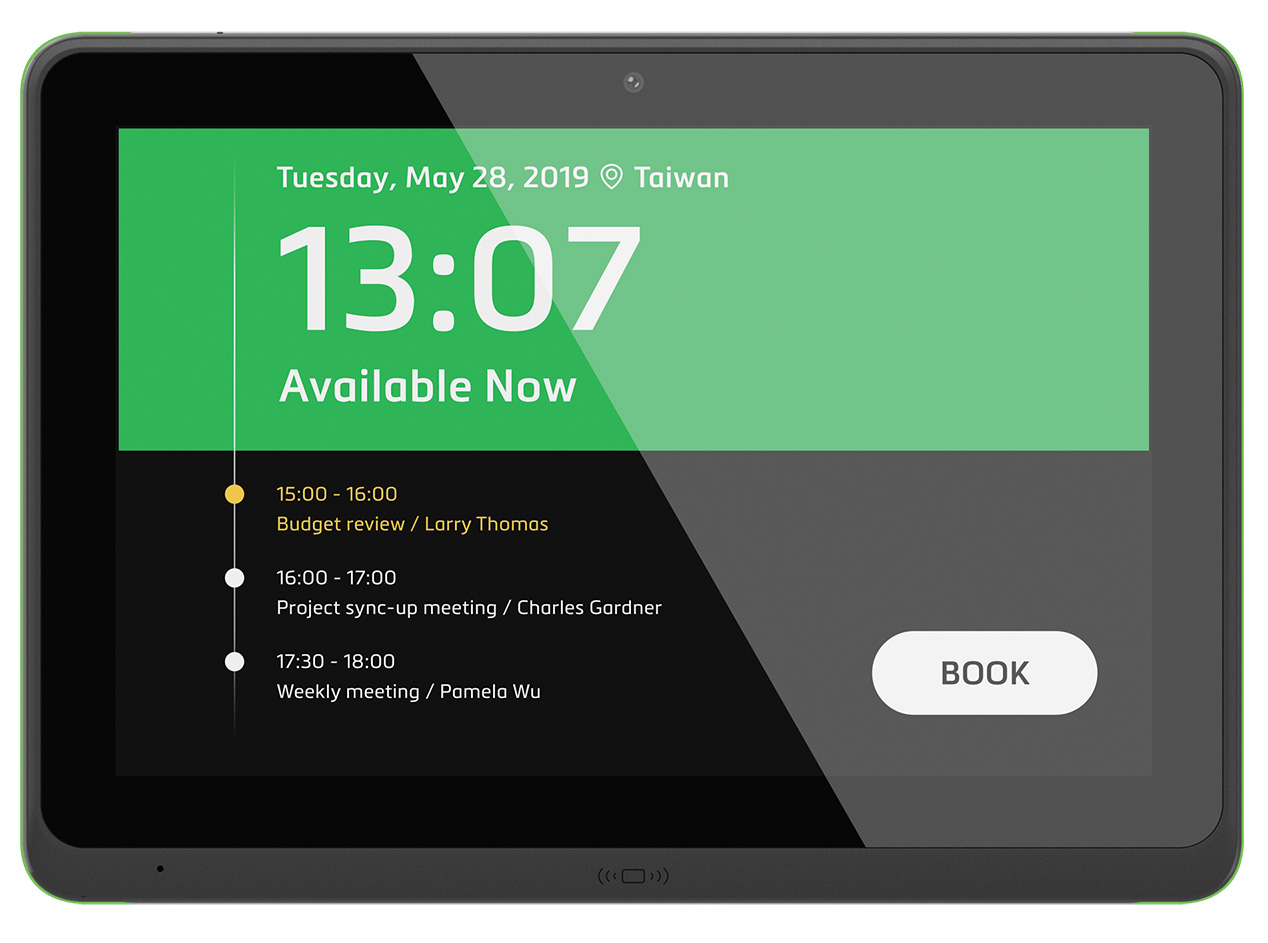 A MioSPACE sorozat eszközei mind függőleges, mind vízszintes képernyő módban használhatók. A tablet oldalán látható háromszínű (RGB) LED világítás a képernyő aktiválása nélkül közvetít információkat, például azt, hogy egy tárgyalóterem éppen szabad-e vagy sem.