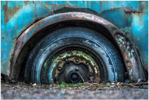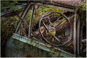 A fotósorozatban található képek többek között tűzmarta autóüléseket, a tőzegmocsárba süppedő, elszíneződött dísztárcsákat és vastag, zöld mohával benőtt műszerfalakat ábrázolnak.