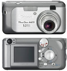 A népszerű PowerShot A400 utódjaként a PowerShot A410 tetszetős új külsővel rendelkezik, megnövelt kezelhetőségét és teljesítményét pedig a DIGIC II processzornak, a 3,2-szeres optikai zoomnak és f/2,8 – f/5,1 fényerejének köszönheti. A gép teste kisebb, kompaktabb, és strapabíróbb lett. 5 pontos AiAF autofókusz-rendszer és a felvételi módok széles választéka miatt a könnyen kezelhető A410 ideális azoknak, akik filmesről digitális gépre szeretnének váltani.
