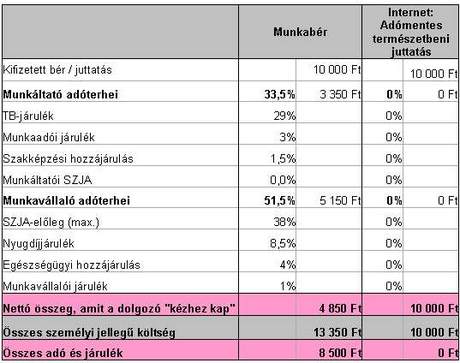 A számok önmagukért beszélnek: amennyiben a vállalatok Internetet adnak természetbeni juttatásként, több mint 50 százalékos költségmegtakarítást érhetnek el a munkabérben történő kifizetéshez képest: vagyis 100 százalékkal magasabb nettó támogatást adhatnak dolgozóiknak ugyanakkora bérköltség mellett.
