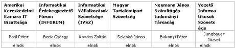 Az aláíró szervezetek meggyőződése, hogy az információs társadalom kialakítása és politikai programja nemcsak ágazati vagy tárcafeladat, hanem a magyar társadalom, a közszféra és a gazdaság legátfogóbb jövőképét meghatározó, kormányszintű, parlamenti és társadalmi megegyezésen alapuló elvárás. Ennek megvalósításához az informatika szervezetek készek a párbeszédre a kormányzattal és a célok megvalósításában történő közreműködésre.