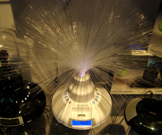 Ha már az iPodoknál tartunk, leszögezhetjük, hogy az idei CES fókuszában főként az ehhez tartozó kiegészítők álltak, a legtöbb pedig a hangszórókból volt látható. Gondolhattuk volna, hogy már minden létező dolgot kitaláltak ezzel kapcsolatban, de nem! Az Excalibur Electronics három dokkolót is bemutatott, amelyek a retro jegyében készültek: lávalámpa, plazmagömb, és száloptikás megvilágítás. A tökéletes nosztalgiához már csak a Boy George poszter hiányzik a falról.