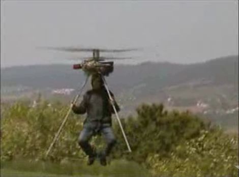 Amikor azt hittük, hogy már láttuk a világ legkisebb személyi helikopterét (amelyről egyébként itt teszünk említést), tévedtünk, mert van egy annál is kisebb. A fényképezőgép állványhoz hasonlító vázon elhelyezkedő mini helikopter használatával nagyban növelhetjük esélyünket arra, hogy repülőgép balesetben halálozunk el, jóval az öregkor előtt. Csak zsugorodjunk be a háromlábú alá, mint egy halálvágytól elszánt pilóta, pörgessük fel a fordulatszámot, és szálljunk fel a kék végtelenbe.
