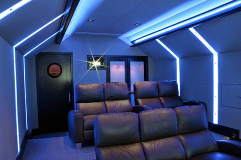 A teljesen egyedileg szerelt LED Home Theaternek nevezett szórakoztató központ visszafogott LED megvilágítása révén a néző ugyanis maga választhatja meg a filmhez leginkább passzoló színt, így bármelyik alkotást is nézzük, annak megfelelően alakíthatjuk a minket körülvevő homályt.