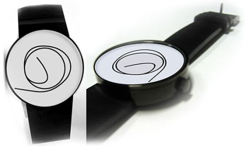 De térjünk vissza a karcórára, amely talán letisztultságával nyerhette meg az Adamo Eva nemzetközi dizájnversenyt, hiszen számlapján mindössze egy firkálás látható, és ahogy telik az idő, a firka változik: egyik vége az órát, a másik vége pedig a percet mutatja. A pontos időt ebben az esetben is csak tippelhetnénk, úgyhogy továbbra is marad a jól bevált mobiltelefon a zsebünkben.