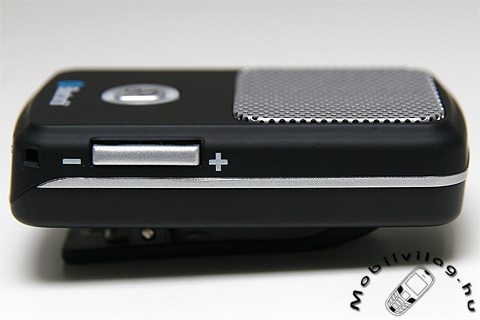 A fedlapon az apró lyukakkal tűzdelt műanyag lap alatt lakik a meglepően nagy hangerejű hangszóró, lentebb pedig egy működésjelző LED-re, illetve egy multifunkciós gombra (bekapcsolás, híváskezelés) lehetünk figyelmesek.