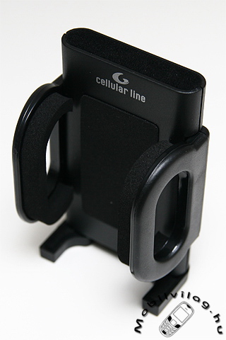 A tartó rész alján két kis fül hajtható ki, melyek puha bevonatot kaptak, így a telefonunk még rázós úton sem fog zörögni. Két oldalt ugyancsak puhán párnázott és tág keretek (45-115 milliméter) közt állítható, nagyméretű tartófüleket találunk, melyek egyetlen gombnyomásra egyszerűen oldhatók, így a kocsiból történő kiszálláskor gyorsan zsebre tudjuk vágni az addig tartóban lévő telefonunkat. Természetesen annak sincs semmi (kialakításbeli) akadálya, hogy a tartóban rögzített készüléket szivargyújtós töltő révén árammal tápláljuk.