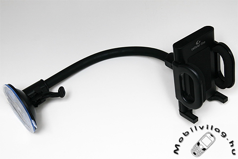 A szélvédőre applikálható, univerzális termék két főbb részegységből áll, egy a végén tapadókoronggal ellátott, flexibilis nyakból (255 milliméter), illetve egy a készülékünket rögzítő bölcsőből – a két alkatrész egy pillanat alatt összepattintható egymással.