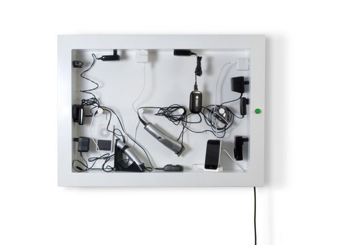 A 75x55x12 centiméteres keretbe így szabadon elhelyezhető az összes töltésre váró kütyü, és akár minden nap új művészi montázs készíthető a telefonokból, PDA-kból, MP3-lejátszókból (mint ahogy ez képünkön is jól látható). A fehér keret minden környezetben megállja a helyét, a több pedig csak rajtunk múlik. A kütyü-képzőművészet tehát megszületett, és csak 450 eurót, vagyis 112 ezer forintot kell fizetnünk érte, ha előrendelni kívánjuk a Naolab hamarosan megjelenő keretét.
