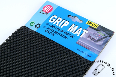 A Grip-Mat egy apró, puha kockákat térhálósan felvonultató, 15×15 centiméteres méretű csúszásgátló megoldás, mely egy csomagban két darab terméket tartalmaz.