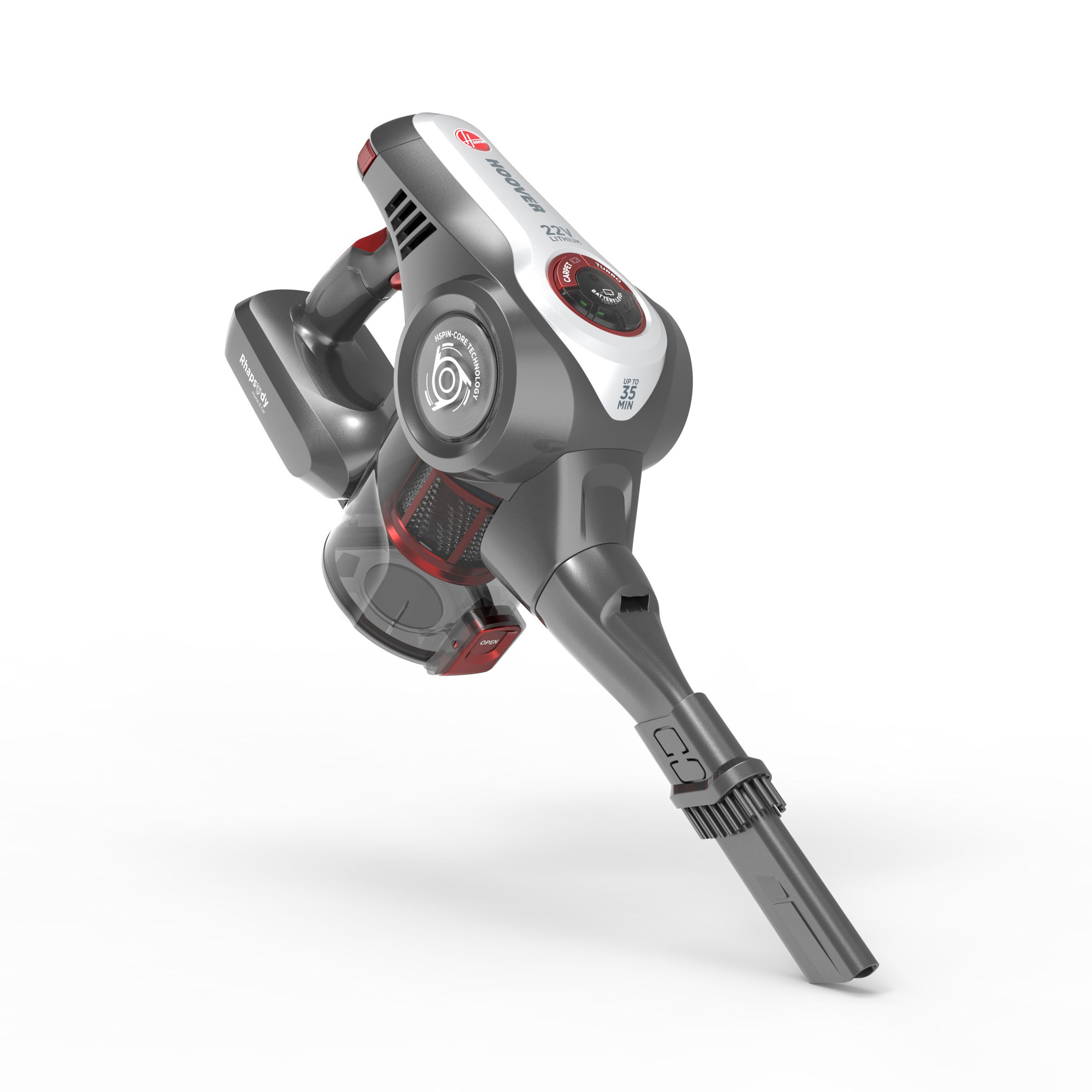 Szintén az IFA-n mutatkozik be a legújabb, vezeték nélküli multifunkciós kézi porszívó, a Hoover Rhapsody. A készülékben elsőként jelenik meg a HSpin technológia, melynek lényege, hogy a gép belső szűrőháza forgómozgást végez, ami a megszokott szívóhatáson túl további légáramlatot eredményez. Ennek köszönhetően az összegyűjtött kosz a tartály aljára kerül, így annak ürítése nem tartozik többé a „piszkos munkák” közé. A készülék számos kiegészítőjének köszönhetően a lakásban és kültéren egyaránt megállja a helyét, legyen szó autókárpit, padlószőnyeg vagy éppen parketta tisztításáról.