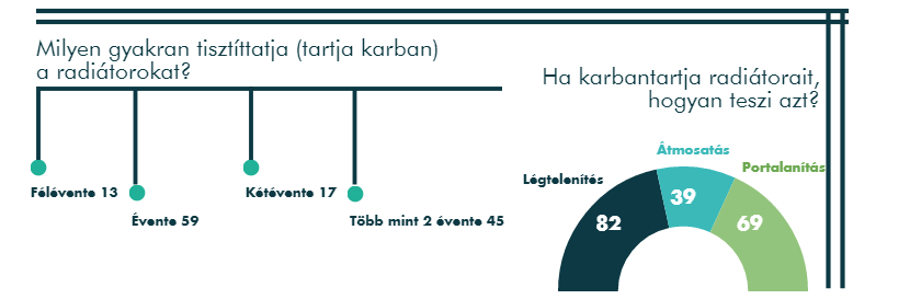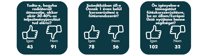 A válaszadók döntő többsége nem tudta, hogy a radiátorokat ill. a fűtési rendszert át lehet mosatni megfelelő géppel. Szerelők számára szaküzletek biztosítják az ilyen gép bérlését, de vannak olyan vállalkozások melyek erre álltak fel.