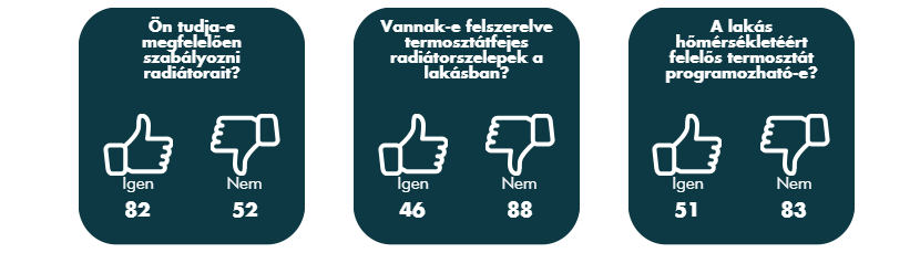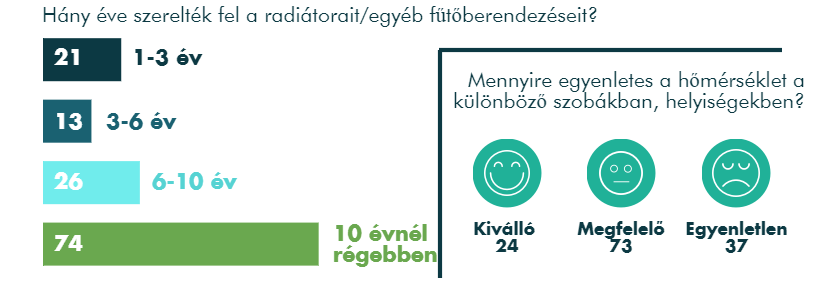 A válaszadók többsége közepesnek ítélte a helyzetet, mintegy negyedük kifejezetten elégedetlen. Az egyenetlen hőmérséklet a lakás különböző helységeiben a nem megfelelő szabályzásra és méretezésre utal. Sokszor azonban a fűtési rendszer eredetileg még alkalmas lett volna a céljára, de például tulajdonos váltás miatt az új felhasználók nem tudják beszabályozni, jól üzemeltetni a rendszert. Sokszor banális problémák okozzák a jelentős hőmérsékleti eltéréseket. Pl.: áramlási szempontból nincs szabályozva, a radiátor szelepek már nem tekerhetőek.