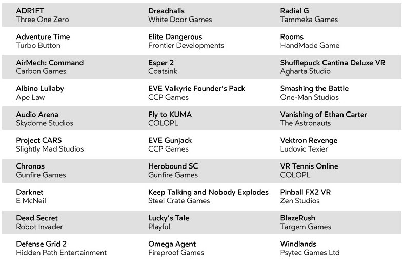 A héten jelentette be a Sony a saját VR headset-et, és mellé 50 játékot, ami megkapja a támogatást virtuális valósághoz. Az Oculus már bemutatta a Rift-et, most azonban adott egy pontos dátumot a várakozóknak a játékokkal kapcsolatban. 30 Rift-el párosítható szórakoztató program startol március 28-án. Az alábbi képen a teljes lista a támogatott játékokról.