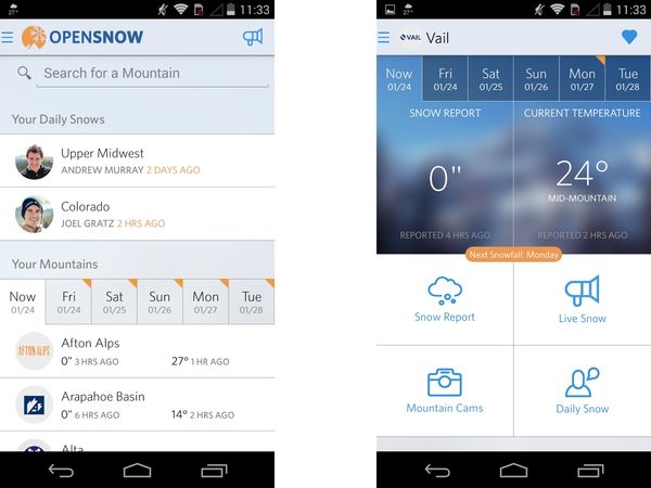 Az OnTheSnow.com saját fejlesztésű applikációja, mely több mint 2000 síparadicsomról és síelésre alkalmas terepről tartalmaz állandóan frissülő időjárás, hó, és egyéb információkról. Természetesen itt is a lelkes felhasználóké a feladat feltölteni minden adatot, amit csak tudnak képekkel, dokumentációval. Rengeteg extrával érkezik tovább az app, mint például túrautak, részletek, leírások, vélemények, síeléssel kapcsolatos hírek, illetve információk a legújabb lécekről, ruházatokról.