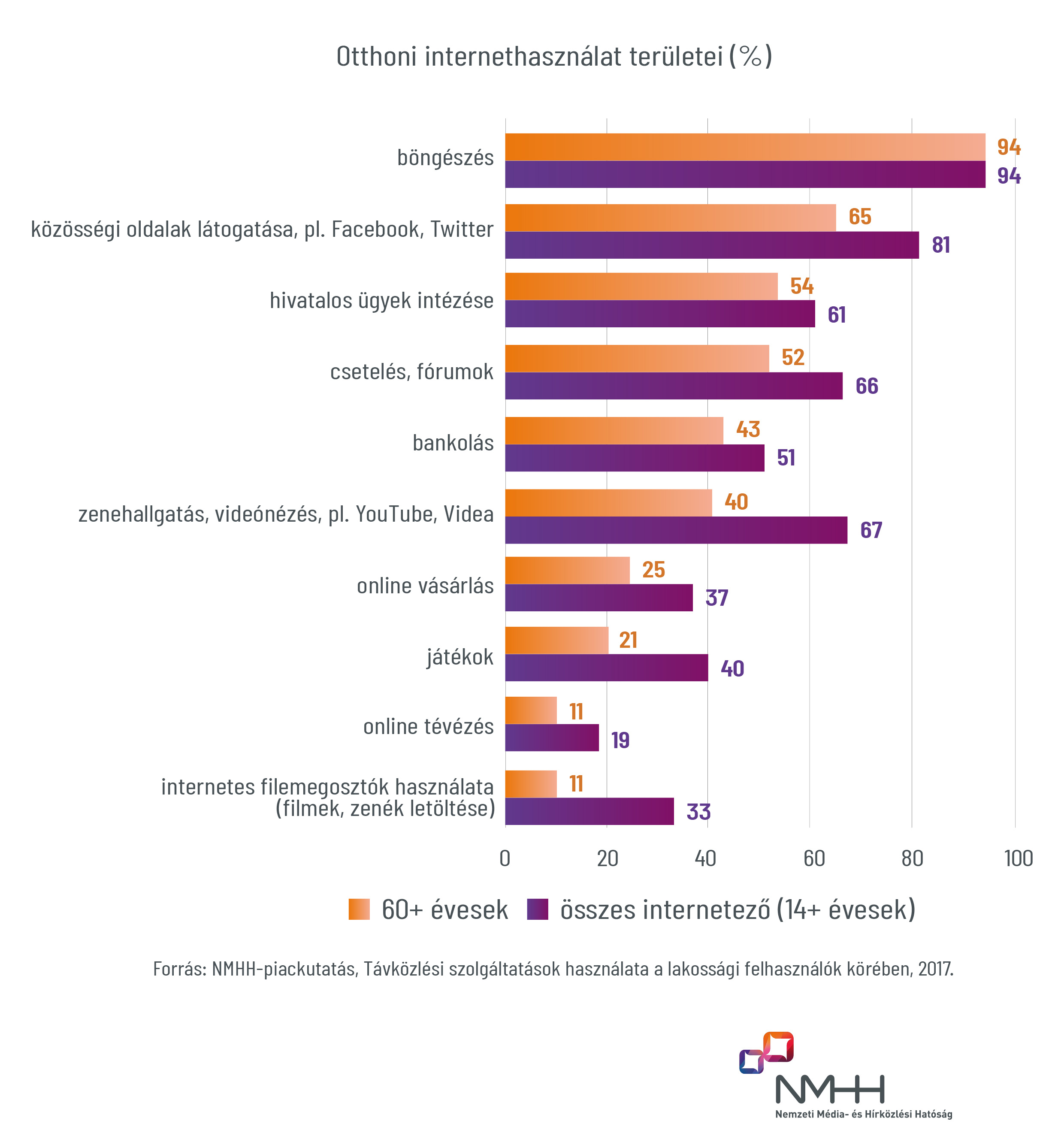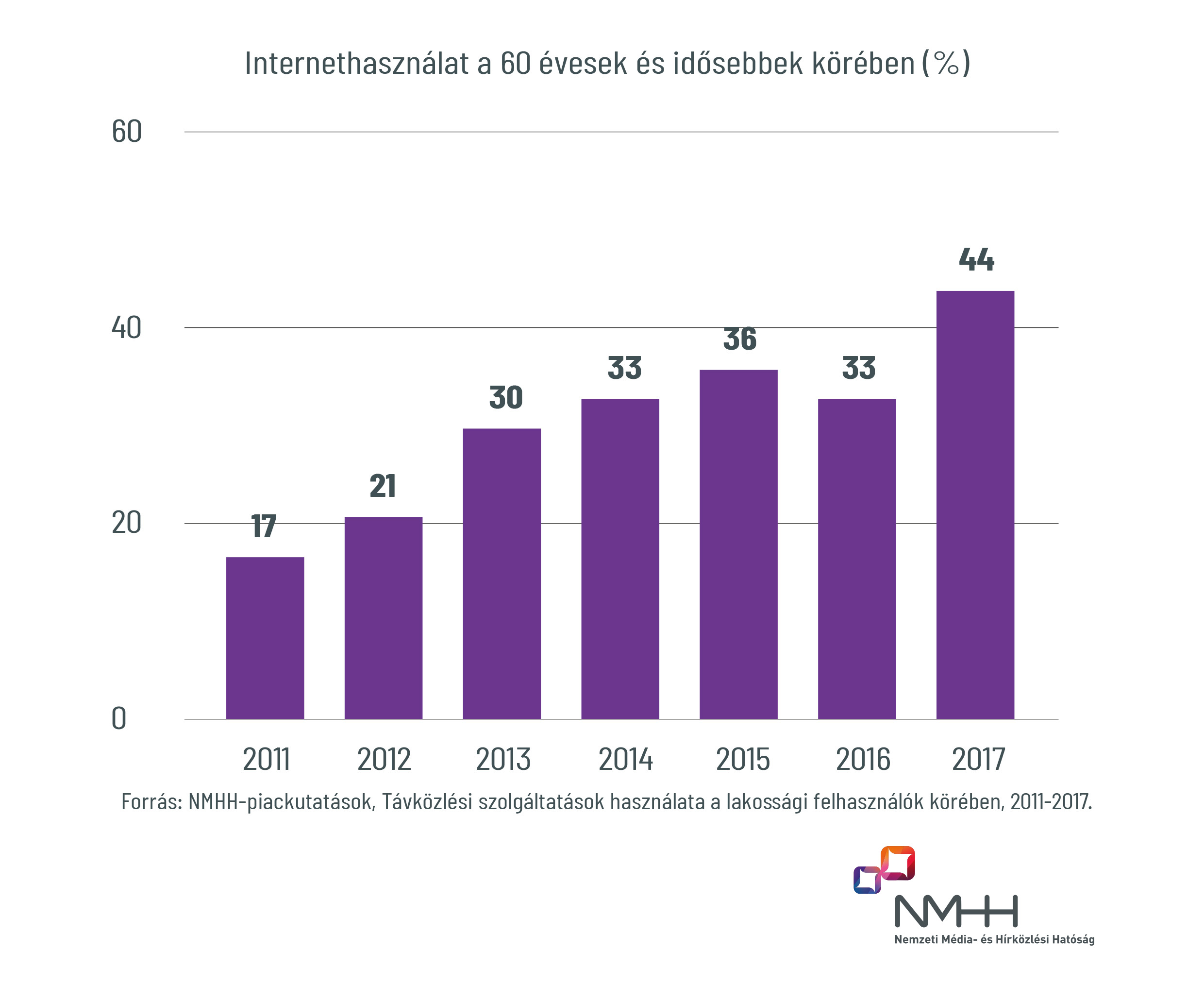 Az NMHH évek óta végez átfogó, országos kutatásokat különböző témákban, így többek között a lakossági internethasználatot, illetve az egyes távközlési szolgáltatások használatát is folyamatosan vizsgálja. Ennek kiemelt eredményei, valamint érdekes adatokat és összefüggéseket tartalmazó részletes összefoglalója a hatóság honlapján bárki számára elérhető. A felmérések azzal a céllal készülnek, hogy az NMHH pontosabban lássa és megértse a fogyasztók távközléssel kapcsolatos szokásait és véleményét, az azonos módszertannal készülő idősoros vizsgálatok alapján pedig megbízható becsléseket tud tenni az időbeli változásokra. A friss kutatási eredmények közül az egyik legfigyelemreméltóbb az idősekről szól.