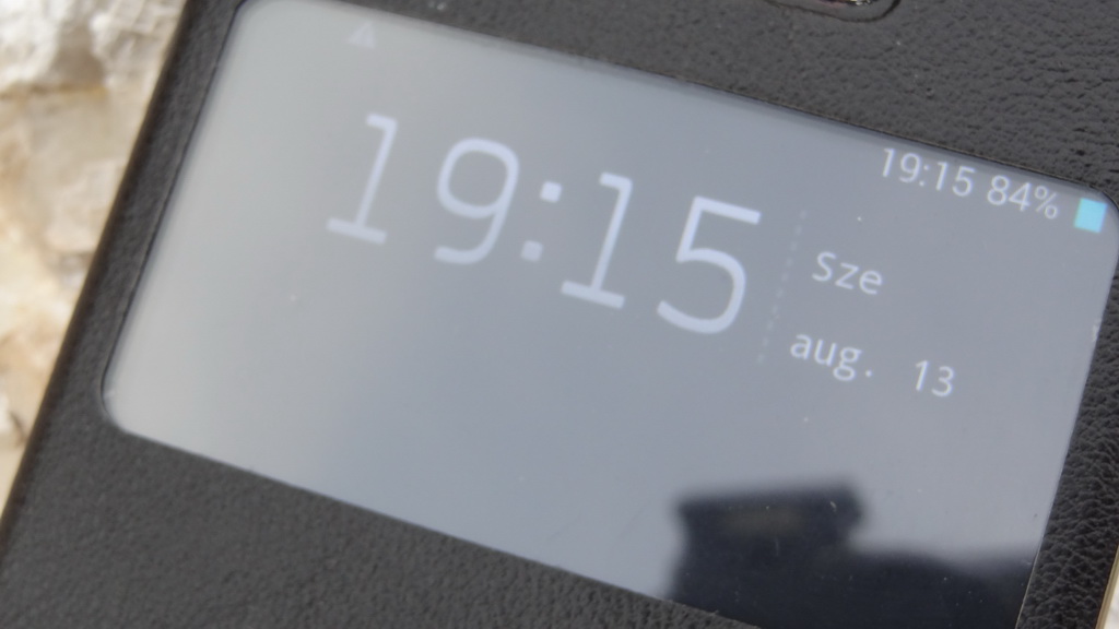 Néhány szót hadd szóljak a telefonhoz kapott aktív tokról. Más, “márkás” telefonokhoz az ilyet aranyáron adják, itt meg benne van a dobozban. Ez azt tudja, hogy védi a készüléket – ez még nem olyan nagy dolog – de van rajta egy kis ablak, amelyen keresztül becsukott állapotban is látszanak a lényeges dolgok. Úgy van tehát nagyképernyős készülékünk, hogy nem kell aggódjunk a képernyő sérülése miatt. A tok nyitását-zárását is érzékeli a telefon, így nem kell például bekapcsológombot nyomni a képernyő felélesztéséhez. Olyan finom kis extra ez tehát, amit szeretni fogunk, ráadásul ez a tok jó minőségű, a telefon nem lesz sokkal vastagabb tőle. Használnék ilyet, ha lenne az én készülékemhez is, de nincs. Igaz, ez csak egy “márkás” telefon.