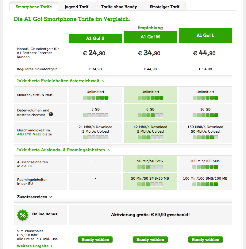 A hazánkhoz méretben és lakosságban is elég közel álló országban három szolgáltatóból választhatunk, ők az A1, a „3“ és a T-Mobile. Lássuk akkor ebben a sorrendben!