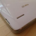 Az észveszejtő 13MP-es kamera középen található, a szimpla flash és a videomikrofon mellett. Sajnos ennél a modellnél sem kapunk sztereo hangszórókat, így a lent elhelyezett, középszerű egységgel kell beérnünk. A micro USB port lent középen, a jack csatlakozó pedig fent jobb oldalon láthatjuk.