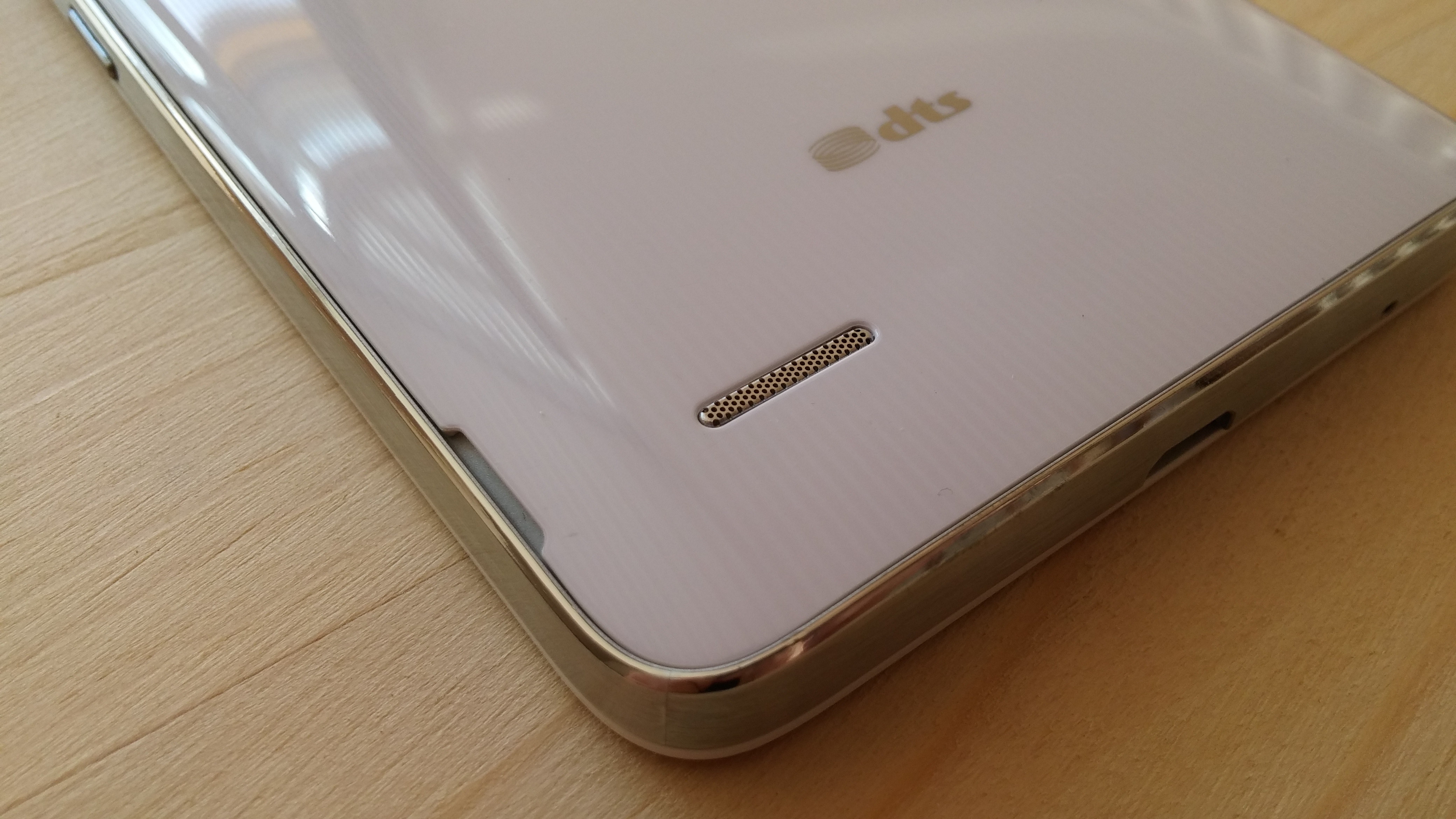 Az első szembetűnő dolog, melyet a külső kapcsán említhetünk, az az őrületesen magas és széles ház. Szögletes dizájnja és lekerekítetlen élei miatt nem túl kényelmes az egykezes használat, de nem mondhatnánk, hogy a tervezők rossz munkát végeztek, hiszen a képernyő körüli keret egész vékony és 8.9 mm-es vastagságával az LG G3-at is behozza. Súlyát tekintve is meglepően jó adatokkal nézünk szembe: 162 gramm.