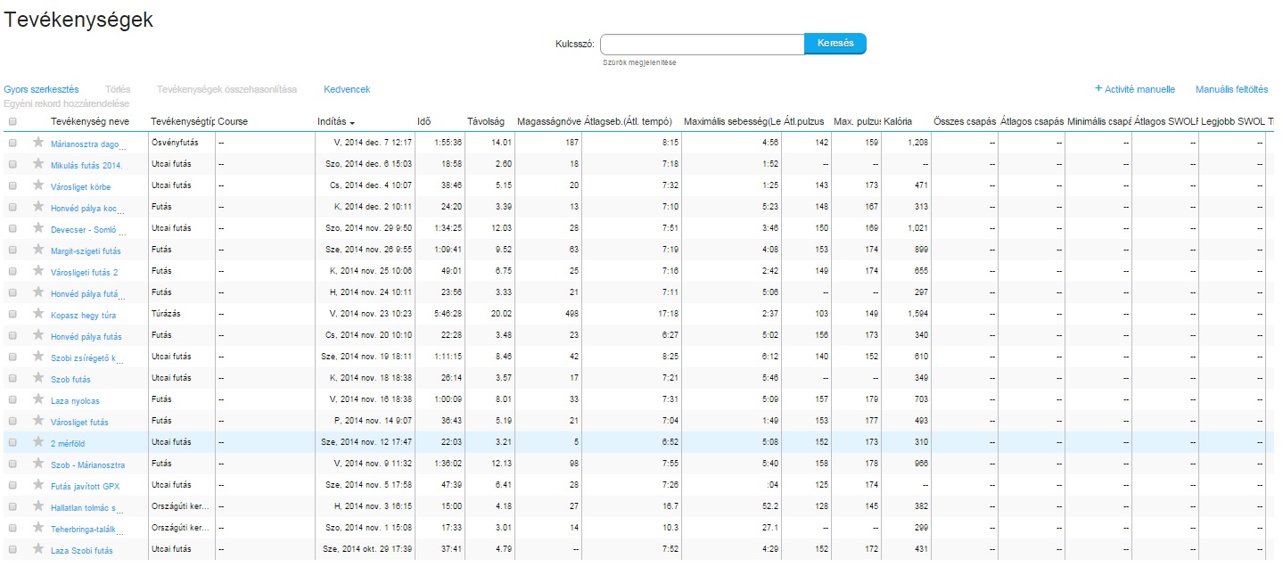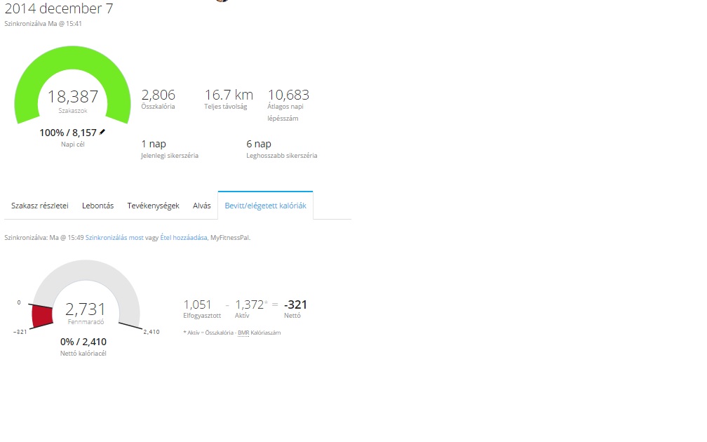 Amikor megvásároljuk az órát, ne felejtsük el frissíteni! A saját káromon tanulva hadd figyelmeztessek mindenkit, hogy a dobozból kivett óra az első edzéseken 10%-okat csalt, de frissítés óta halálpontos. Majdnem visszavittem a boltba, hogy hibás. A frissítéshez nem kell más, mint a Garmin Express, mindent megcsinál helyettünk! A Garmin az órához – és egyéb termékeihez is – nagyon jó háttérszolgáltatásokat ad, és talán ez a legfőbb érvem mellette. Ezek közt első helyen említeném a Garmin Connect-et, amely a nevéhez méltóan képes sok mindent “összekötni”. Ingyenes. Az internetes felületen (okostelefonon is) látunk mindent, a saját tevékenységeinket és az ismerőseink tevékenységeit is. Az írás későbbi részében megemlített Withings okosmérleg és az étkezési szokásainkat elemző My Fittness Pal szoftver is tökéletesen működik vele és gyönyörűen láthatjuk a három különböző forrásból értekezett adatokat együtt. Így például egy grafikonban láthatjuk, hogy mennyi kalóriát fogyasztottunk az adott napon (My Fitness Pal), és mennyi kalóriát égettünk el edzésekkel (Garmin Connect). A szoftverek egymás között is cserélgetik az adatokat, így a My Fitness Pal szoftverében is látszanak a Garmn Connect-tel rögzített edzések.