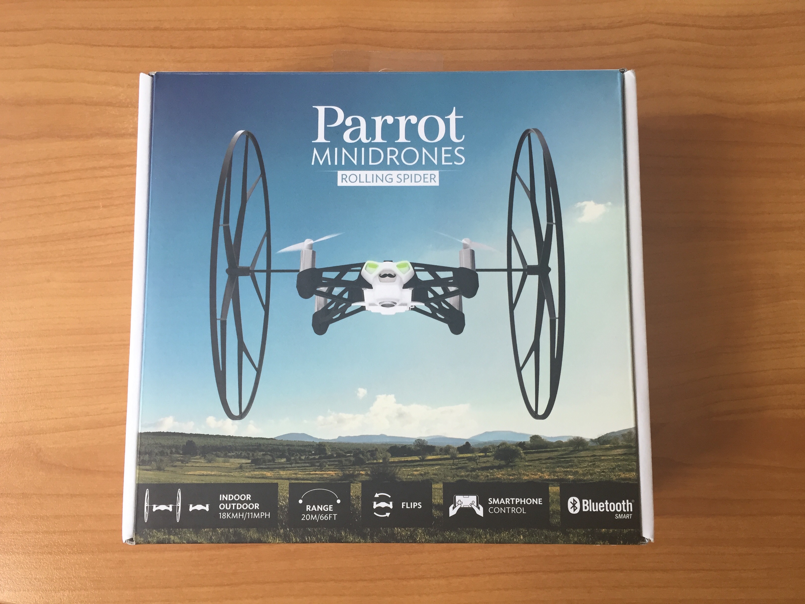 Egy dizájnos csomagban érkezett hozzám a Parrot Rolling Spider. A dobozon minden fontos tulajdonságról képet kaphatunk. Miután kinyitottuk a fedelet, magára a drónra és két furcsa kerékre lehetünk figyelmesek. Ezek nem másra szolgálnak, mint a Rolling Spider “testi épségének” a védelmére, hiszen segítségükkel a propellerek védve vannak az esetleges környezeti akadályoktól. Persze a fizikai védelem mellett mulatságos is, ahogy felgurul a falon egy drón.