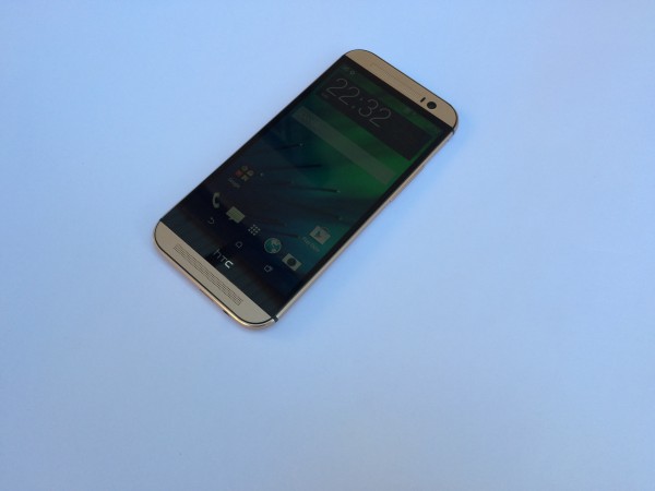 Külsőleg igen kevés változás vehető észre a sima M8-hoz képest, az előlapon alul és felül a sztereó hangszórópáros helyezkedik el, illetve alább még egy HTC felirat is helyet kapott. Középen az 5 hüvelykes, 1080 x 1920 pixeles felbontású, Super LCD3 kijelző terül el. A kép a gyártó többi modelljéhez hasonlóan igen szép és a betekintési szögekkel is elégedett voltam. Feljebb a fény- és közelségmérő szenzort, állapotjelző LED-et és az előlapi kamerát találhatjuk meg.
