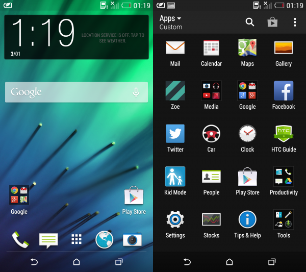 Az operációs rendszer ebben az esetben is az Android OS, abból is a 4.4.4-es verzió. Ez sajnos egyáltalán nem a legfrisebb verzió (főleg, hogy már a küszöbön van a 6.0 is!), jó lenne ha hamarosan érkezne frissítés. Mindettől függetlenül a rendszer sebességével nem volt problémám, minden megfelelően tette a dolgát, nem voltak fagyások és akadások. A kezelőfelület a HTC jól ismert Sense UI 6.0-ás kiadása.