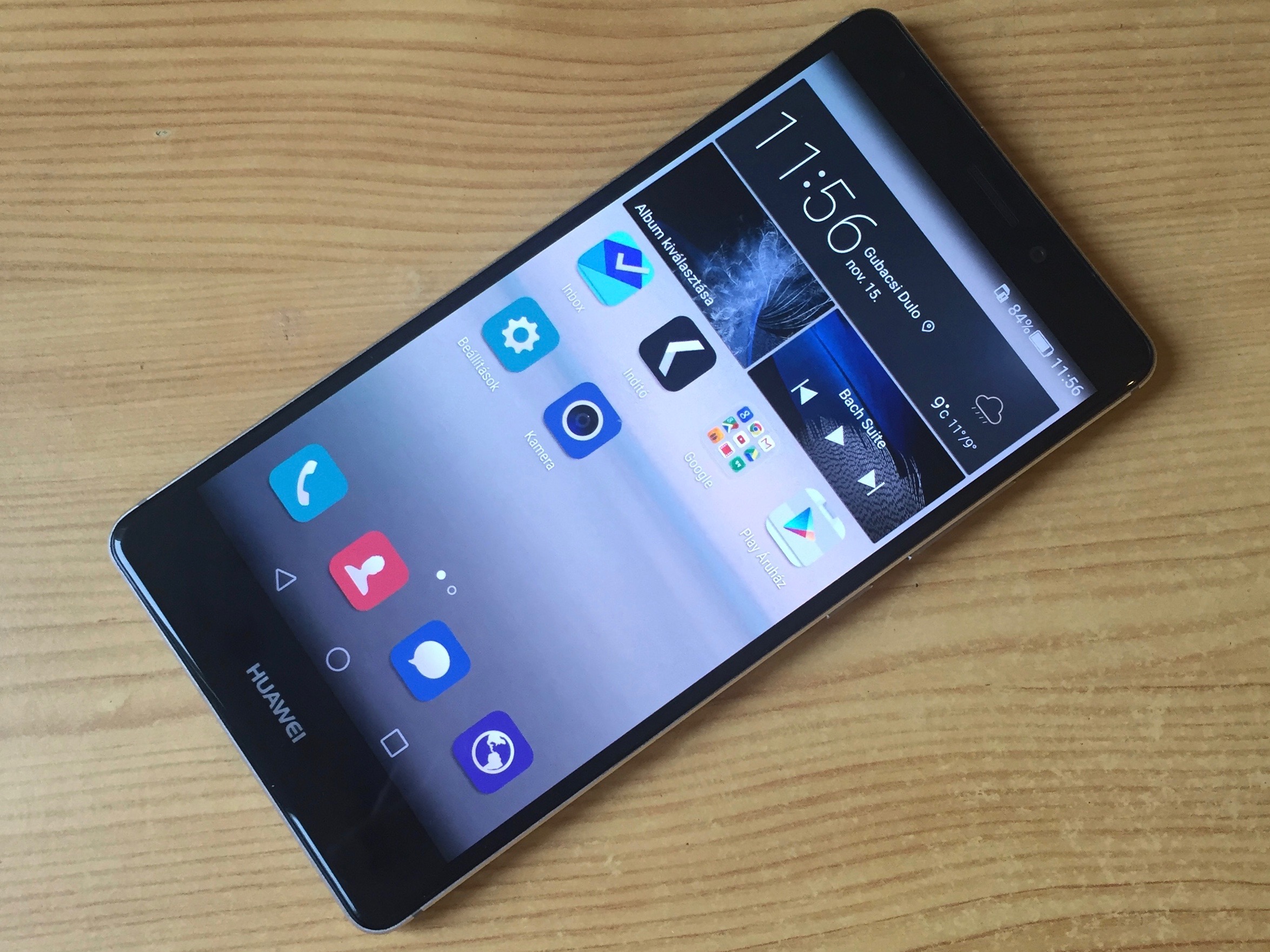 A hátoldalon egy 13 megapixeles kamerát találunk. Ez egyáltalán nem újdonság, az RGBW szenzorral szerelt egység már a P8-ban is szolgálatot teljesített, ott is elégedett voltam vele. Az optikai képstabilizátor és a jó szenzornak hála az elkészült képeket nem illethetem sok kritikával, a fotók természetesek, a telefon nem viszi túlzásba a digitális utómunkát. Az F/2-es lencse éjszaka sem mond csődöt, sötétben is értékelhető képeket készíthetünk. Ha mégis elfogyna a fény, akkor a dupla LED villanó siet a segítségünkre.