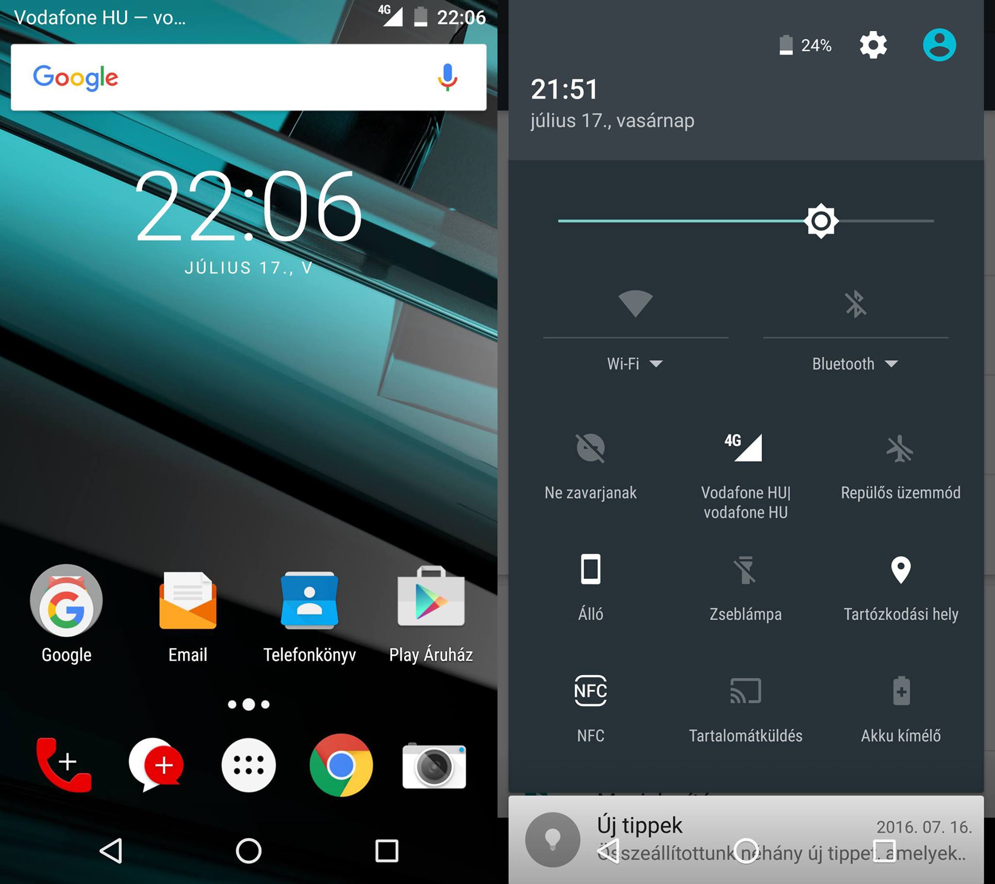 Szoftver tekintetében a Google Android 6.0-ás kiadása áll a rendelkezésünkre, ehhez pedig minimálisan nyúltak hozzá a Vodafone szakemberei. Ez azt jelenti, hogy sem egyedi téma, sem más, idegesítő funkció nincs, néhány ikon és pár alkalmazás az, ami megkülönbözteti a menürendszert egy Nexusétól. Az alkalmazások között épp ezért igazán csak a Vodafone fejlesztéseit emelném ki.