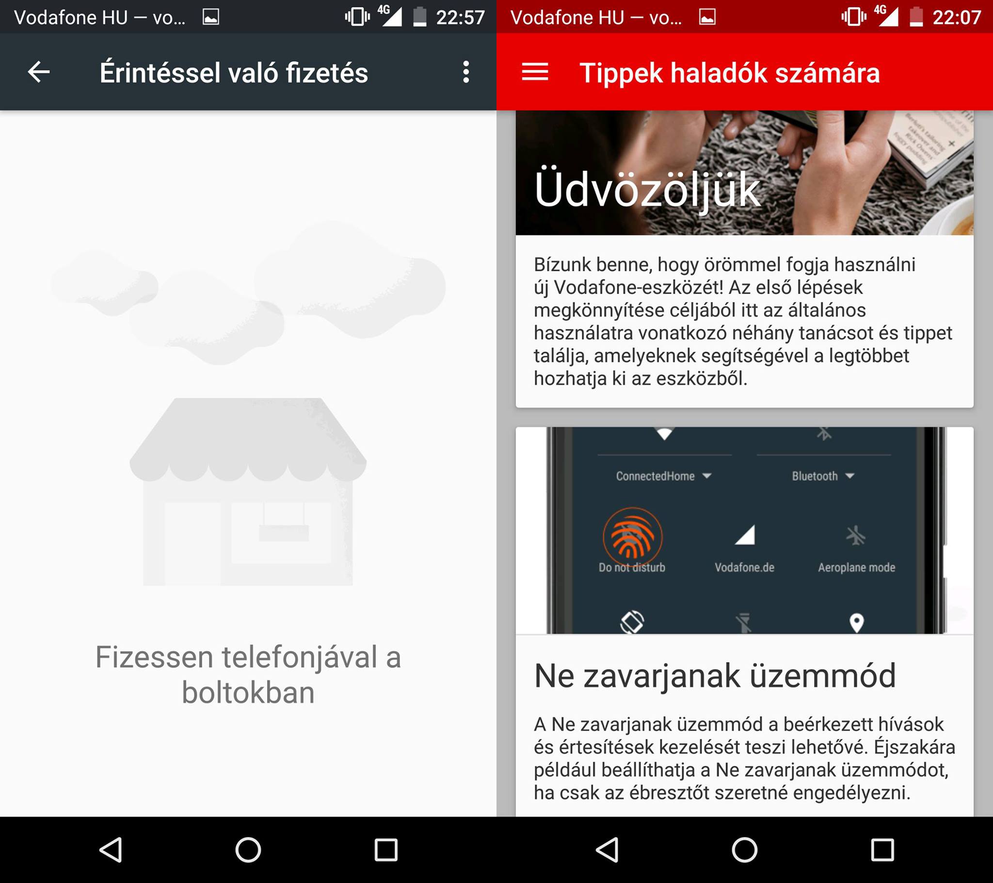 A pénzünkért kapunk egy Vodafone Protect névre keresztelt, valójában a McAfee vírusírtóját takaró szoftvert, használhatjuk a Mobil Vodafone applikációt (így megnézhetjük a hátralévő adatkeretünket, a beszélgetéseink számát stb.), illetve kipróbálhatjuk még a Tips-et, amelyben a telefon használatát segítő tippeket olvashatunk el.